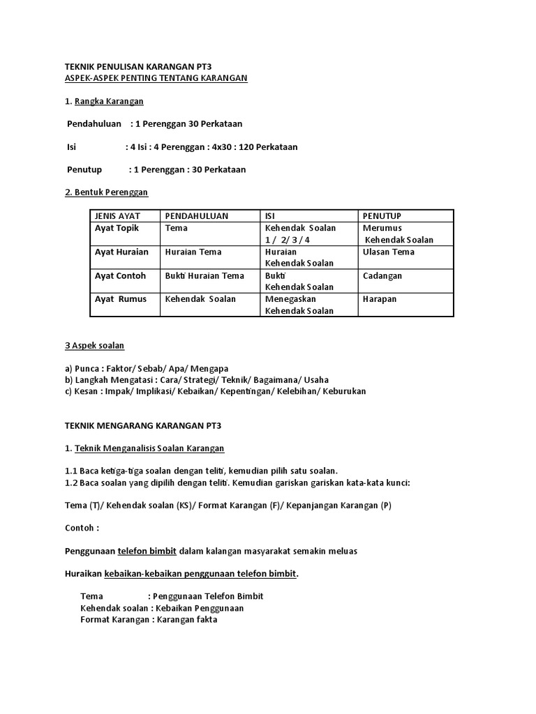 Teknik penulisan ini adalah asas kepada penulisan karangan pendek pt3. Menulis dalam beberapa perenggan seperti menulis karangan biasa. Teknik hurai isi karangan spm pt3. Diharapkan perkongsian ini memudahkan anda merangka idea dan isi penting untuk menulis karangan fakta pt3 yang bagus sekaligus memperolehi. Bertulis bahasa melayu pt3 ini melalui beberapa kaedah penilaian.