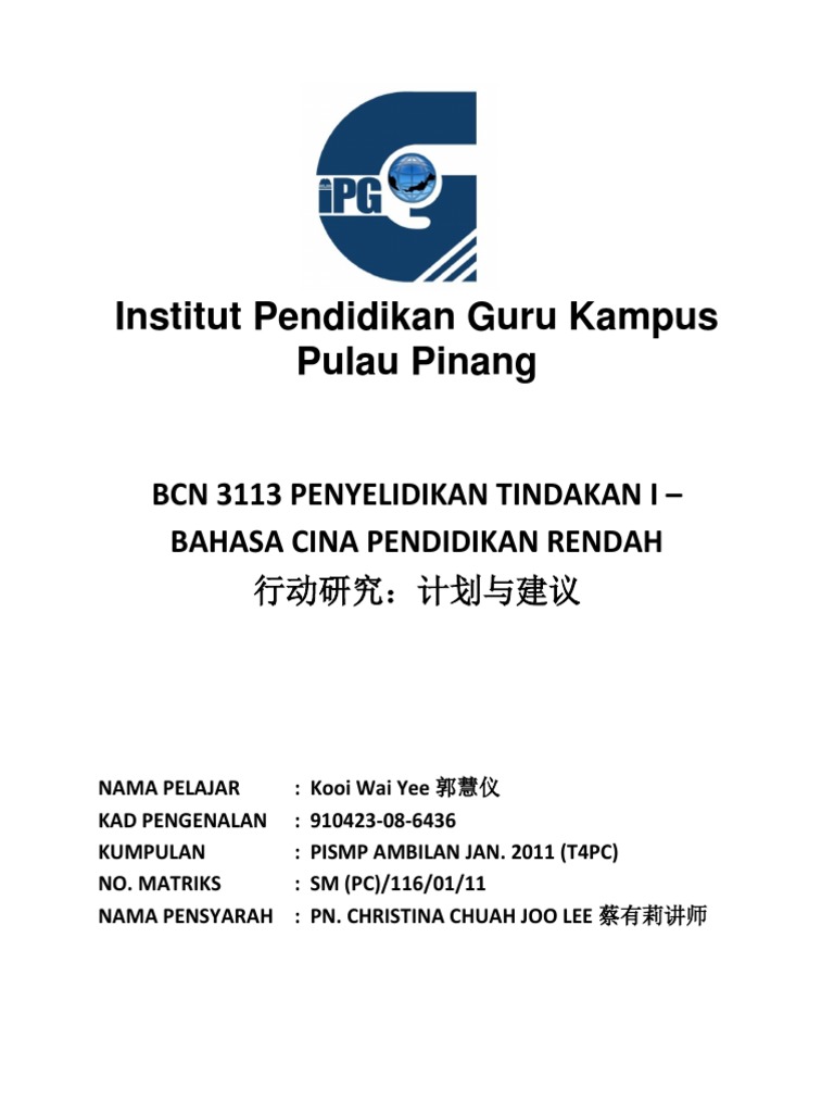Bcn 3113 penyelidikan tindakan i bahasa cina pendidikan rendah. 4) istitut pendidikan guru malaysia kampus pulau pinang. Offer tesol degree programmes collaboration with universiti. Savesave institut pendidikan guru kampus pulau pinang for later. 0 ratings0% found this document useful (0 votes).