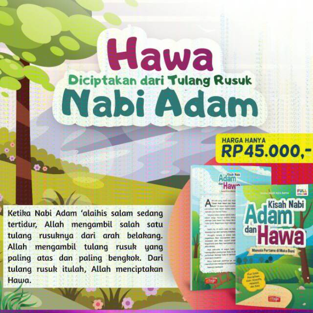 Kisah nabi adam as dan hawa, mulai dari proses penciptaan manusia pertama, hingga diturunkan ke bumi karena terpengaruh oleh godaan iblis. Di dalam tidurnya, adam bermimpi melihat sosok siti hawa (saat sebelum hawa diciptakan). Kisah nabi adam untuk anak. Tapi itu tidak selalu begitu. Pada versi kristen dan yahudi, hawa digoda oleh setan dalam wujud ular untuk memakan buah yang dilarang untuk makan oleh tuhan. Kecantikan hawa, membuat adam jatuh hati. Segala kesenangan ada di dalamnya. Proses yang melaluinya umat manusia menjadi fana di atas bumi ini. Adam menjadi daging pertama di atas bumi ( musa 3:7 ). Padang arafah menjadi saksi sejarah bagaimana nabi adam selama ratusan tahun mencari isterinya setelah diusir dari syurga. Demikianlah menurut riwayat, tatkala allah subhanahu wata'ala. Sungguh suatu tempat yang amat indah dan permai, menjadi idaman setiap insan. Simak kisah lengkapnya di bawah ini.