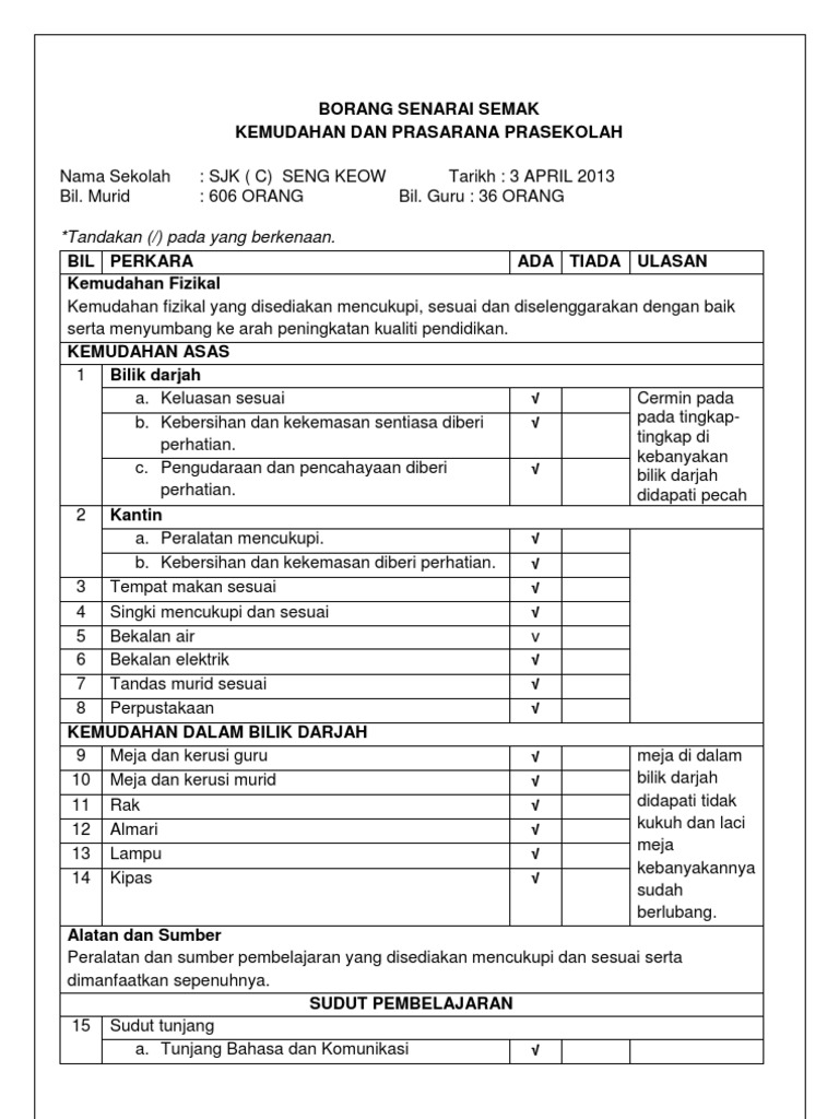 Pdf lampiran 8 senarai semak lawatan penilaian kendiri abdull manaf nordin academia edu. Borang permohonan dan perakuan bagi pemasangan semburan automatik. (b) permohonan hendaklah dikemukakan dalam tempoh 3 bulan setelah kembali ke malaysia. Borang senarai semak permohonan cuti belajar uplbsm/01/2019 borang senarai semak permohonan cuti belajar. Senarai semak permohonan kebenaran berkahwin. Contoh senarai semak by azlinda abdullah 24724 views. Doc senarai semak untuk penganjuran majlis dan acara. Sekolah kebangsaan tunku mahmood (1)senarai semak dsp (dokumen standard prestasi) bahasa malaysia 2012 guru kelas: Jabatan pengairan dan saliran (jps). (lampirkan dihadapan borang permohonan) senarai semak permohonan untuk jawatan di dalam majlis perbandaran kluang majlis perbandaran kluang mengucapkan ribuan terima kasih kepada saudara/individu yang berminat. Borang senarai semak kemudahan dan prasarana. Borang akuan pengesahan mastautin di negeri pulau pinang jika pemohon dari (negeri berlainan) tetapi bermastautin tetap di negeri pulau pinang melebihi 4 bulan. Borang senarai semak permohonan pemeriksaan keselamatan kebakaran.